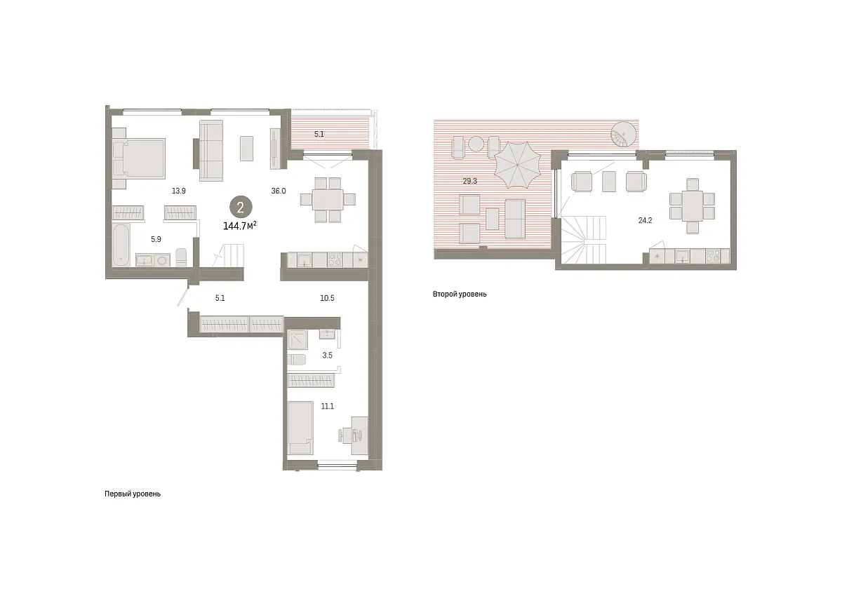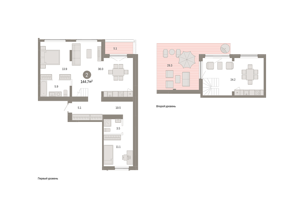 Площадь (общ/жил/кух), м2: 144.66/36.7/48.55