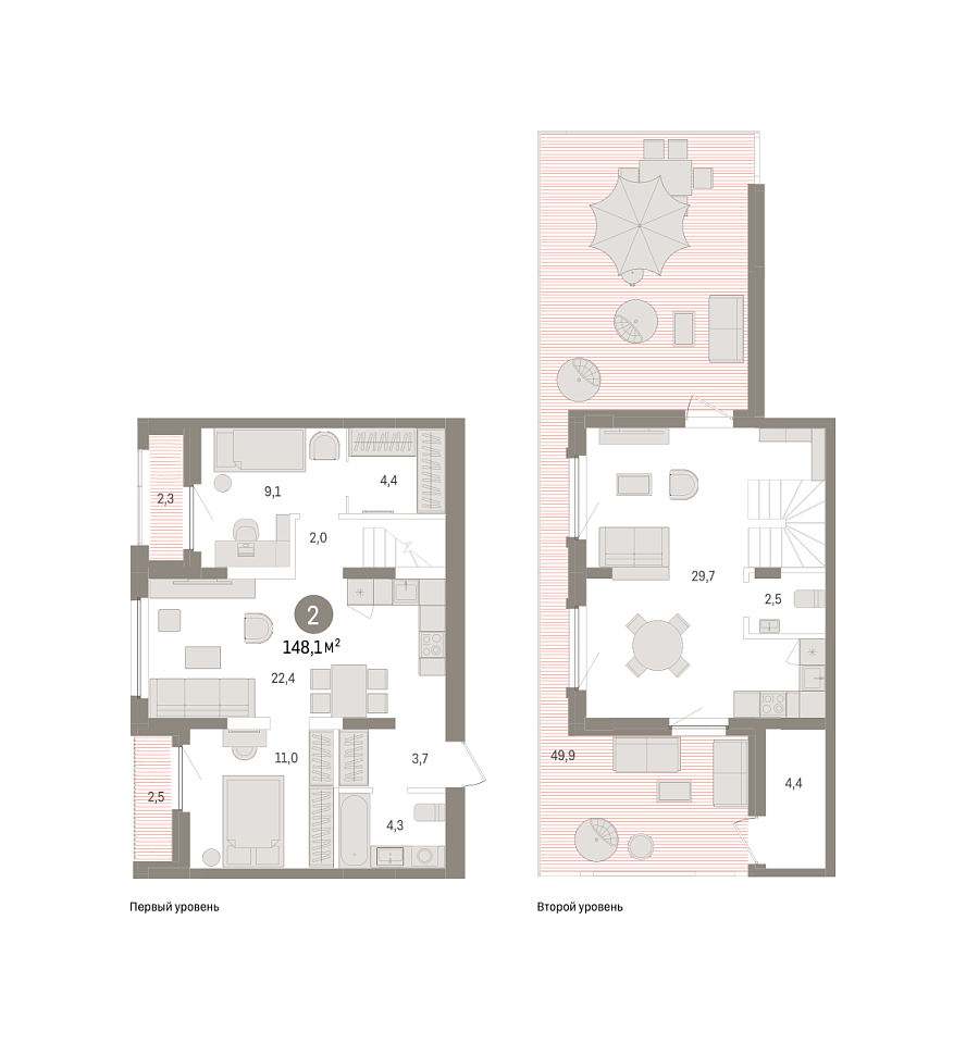 Площадь (общ/жил/кух), м2: 143.1/43.6/5.5