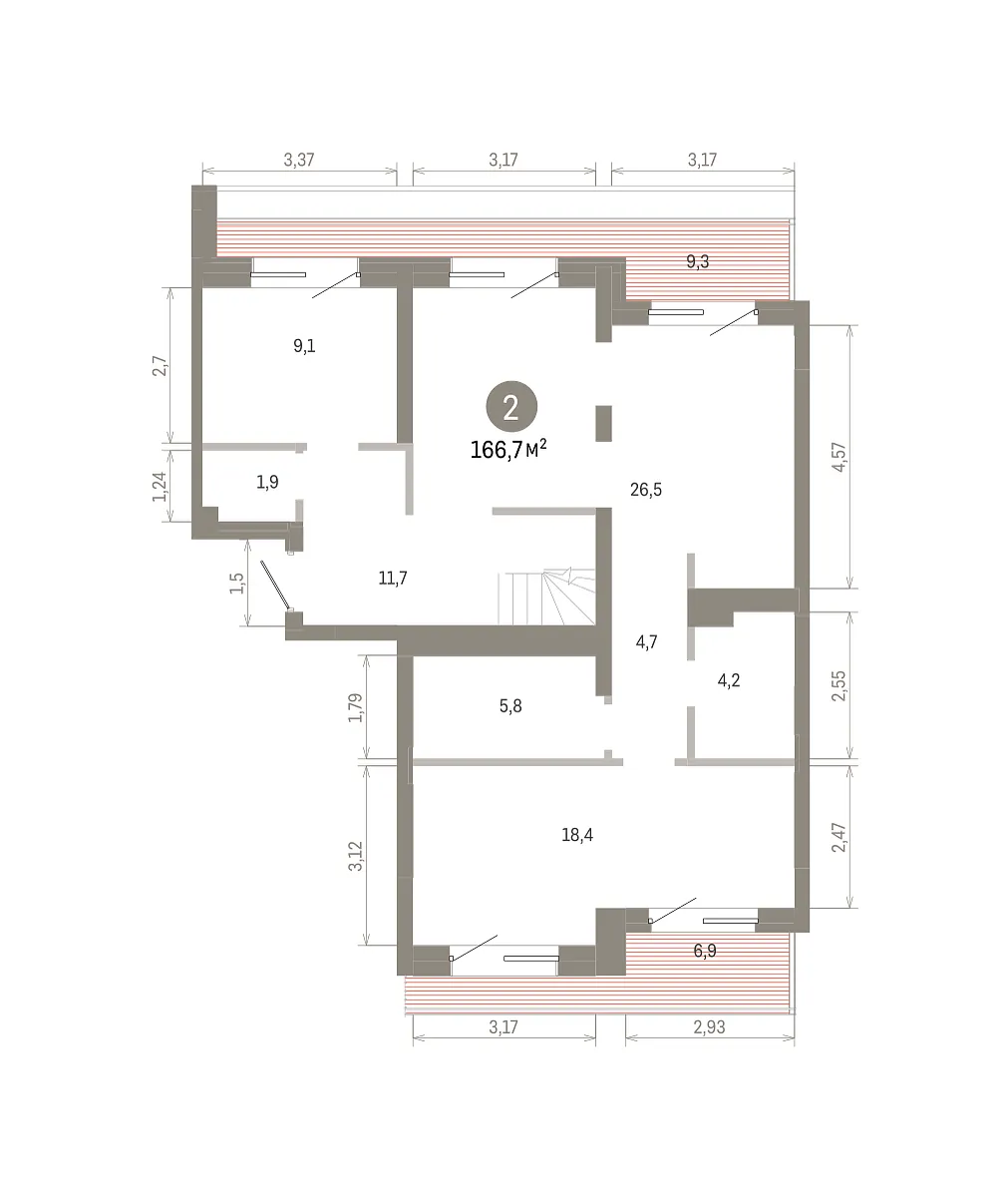 Количество комнат: 2, 166.65 кв.м.