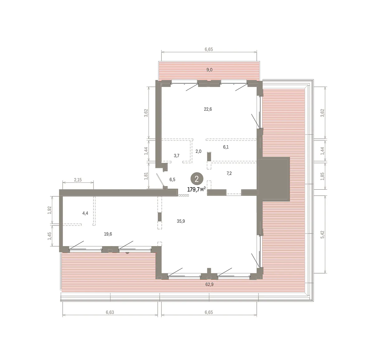 Количество комнат: 2, 179.74 кв.м.