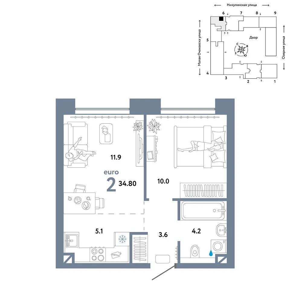 Купить новую двухкомнатную квартиру 34.8 м² на 9/30 этаже в ЖК «Страна.Озёрная», г. Тюмень за 19988235 ₽ | Агентство недвижимости «Вплюсе.Топ» — Недвижимость России