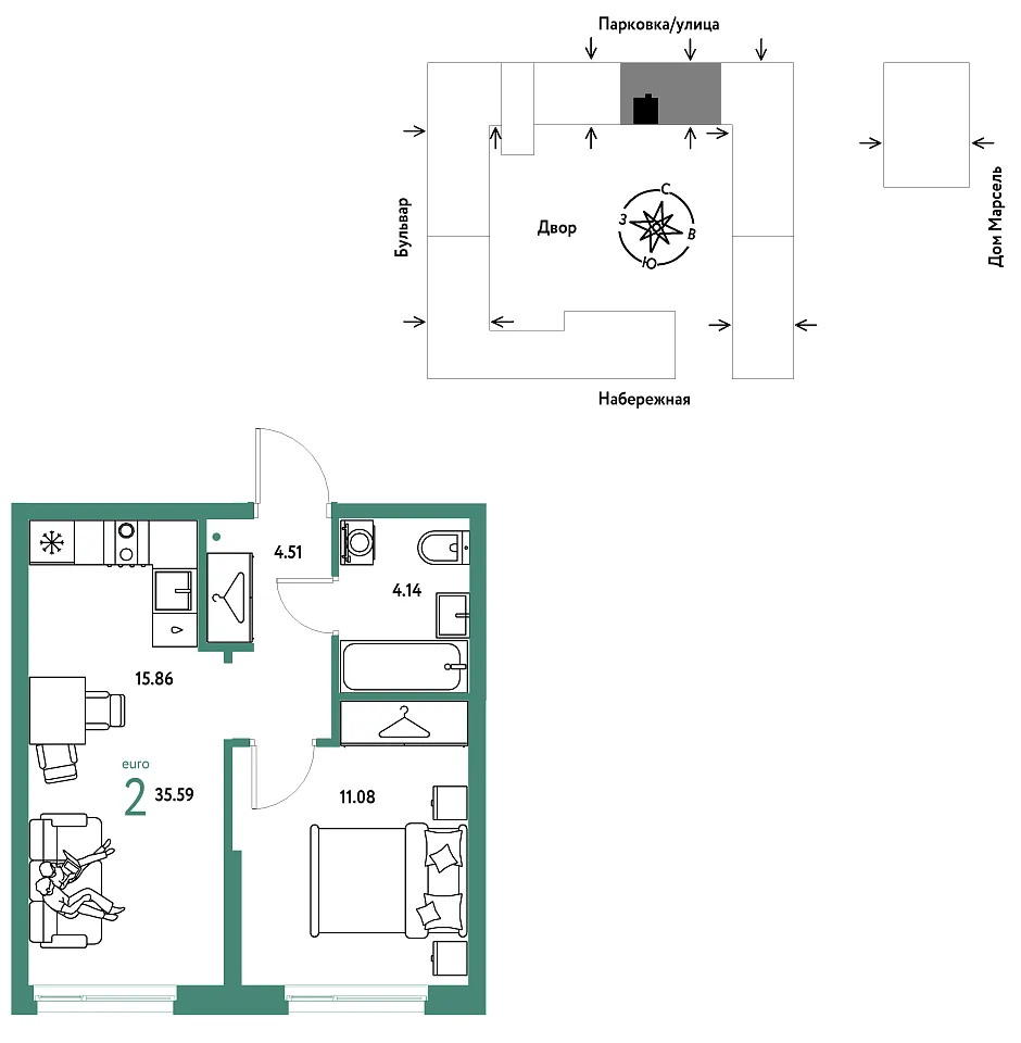 Купить новую двухкомнатную квартиру 35.59 м² на 11/24 этаже в ЖК «Европейский берег 2.0», г. Тюмень за 9144444 ₽ | Агентство недвижимости «Вплюсе.Топ» — Недвижимость России