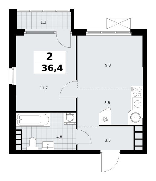 Количество комнат: 2, 36.4 кв.м.