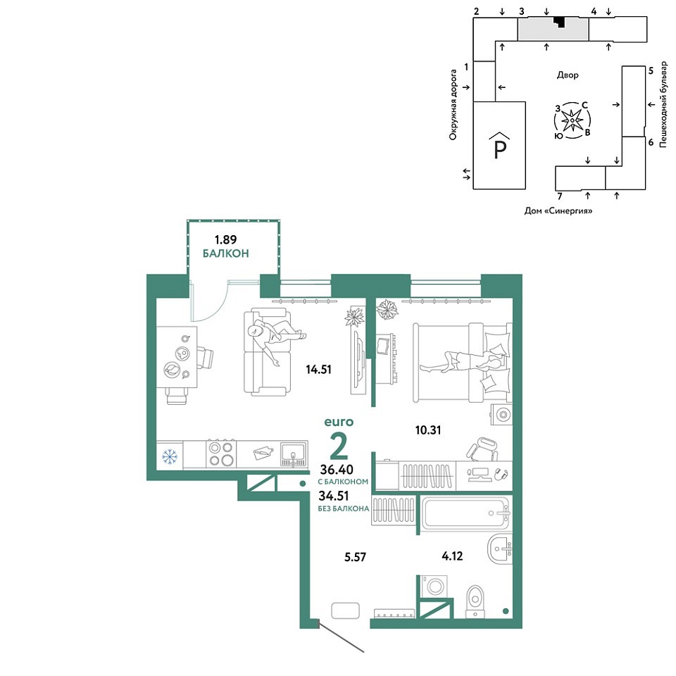 Купить новую двухкомнатную квартиру 36.4 м² на 13/16 этаже в ЖК «Юнион», г. Тюмень за 7011111 ₽ | Агентство недвижимости «Вплюсе.Топ» — Недвижимость России