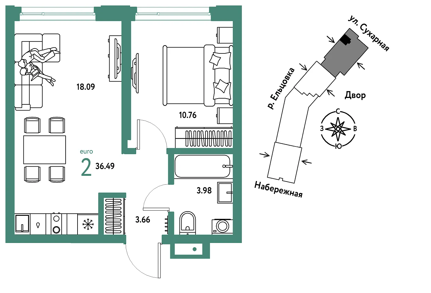 Количество комнат: 2, 36.49 кв.м.
