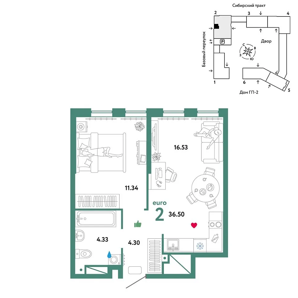 Купить новую двухкомнатную квартиру 36.5 м² на 20/32 этаже в ЖК «Сибирский сад», г. Тюмень за 9000000 ₽ | Агентство недвижимости «Вплюсе.Топ» — Недвижимость России