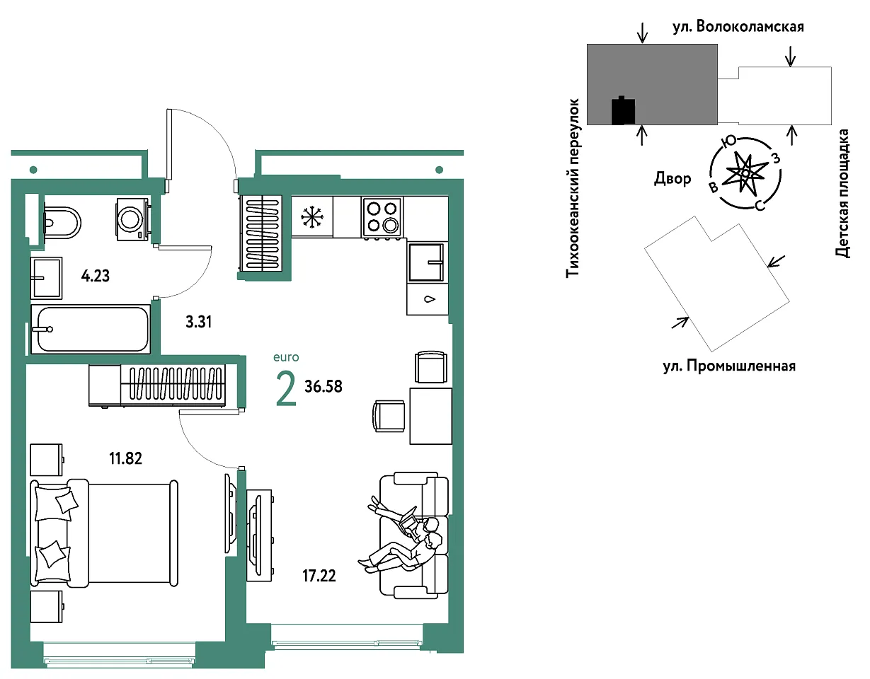Общая площадь 36.58 м2