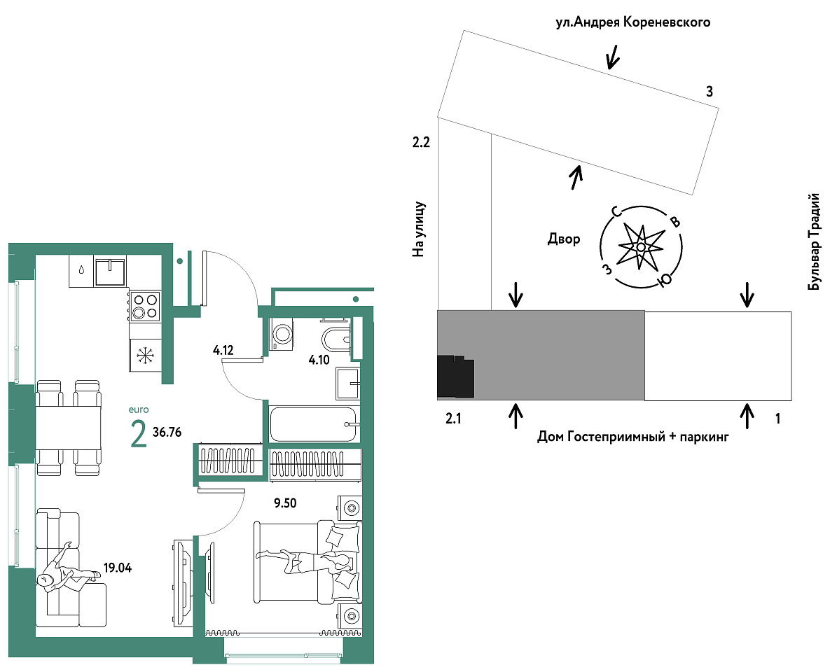 Купить новую двухкомнатную квартиру 36.76 м² на 2/13 этаже в ЖК «Домашний», г. Тюмень за 7547368 ₽ | Агентство недвижимости «Вплюсе.Топ» — Недвижимость России