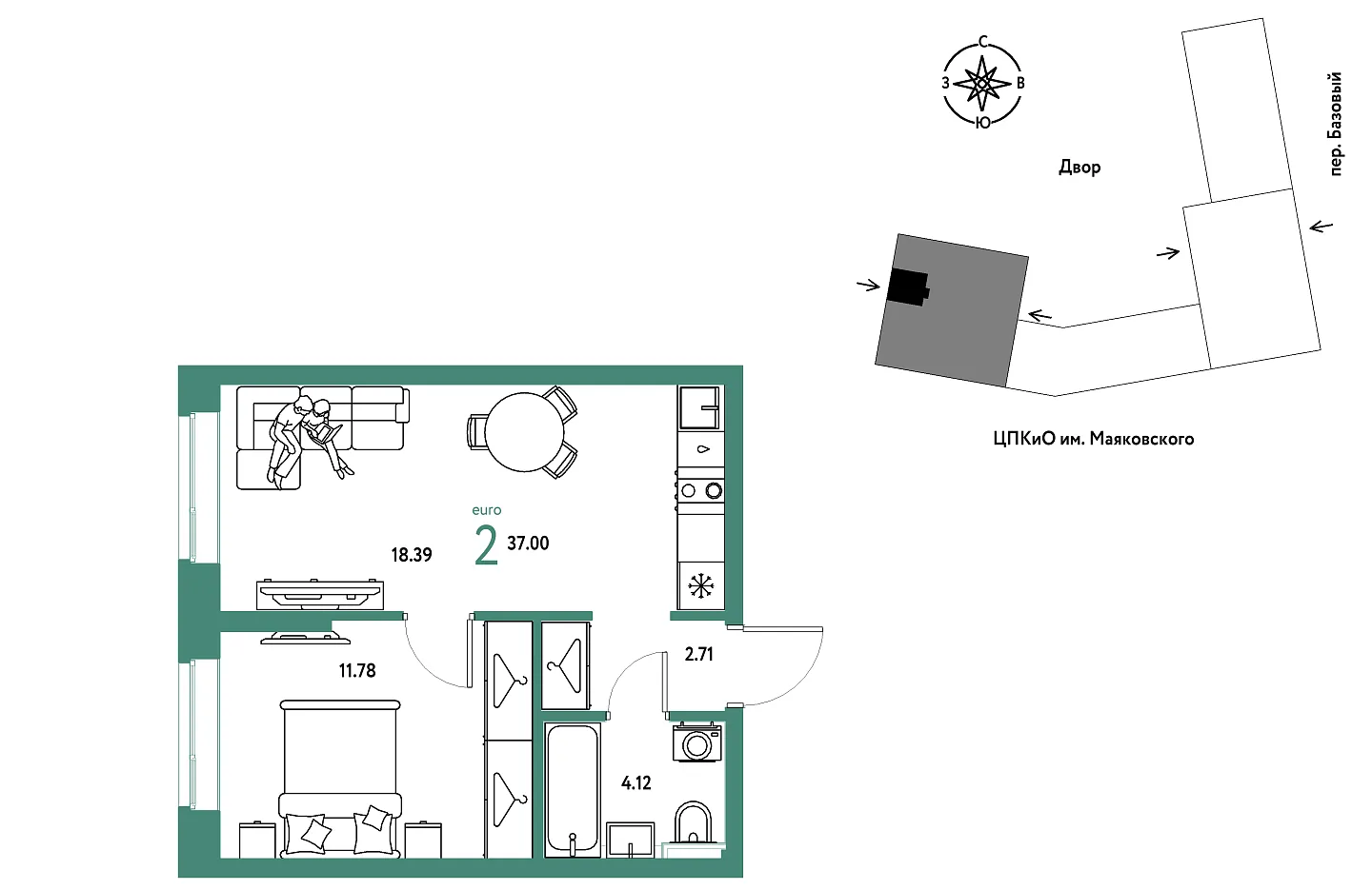 Общая площадь 37 м2