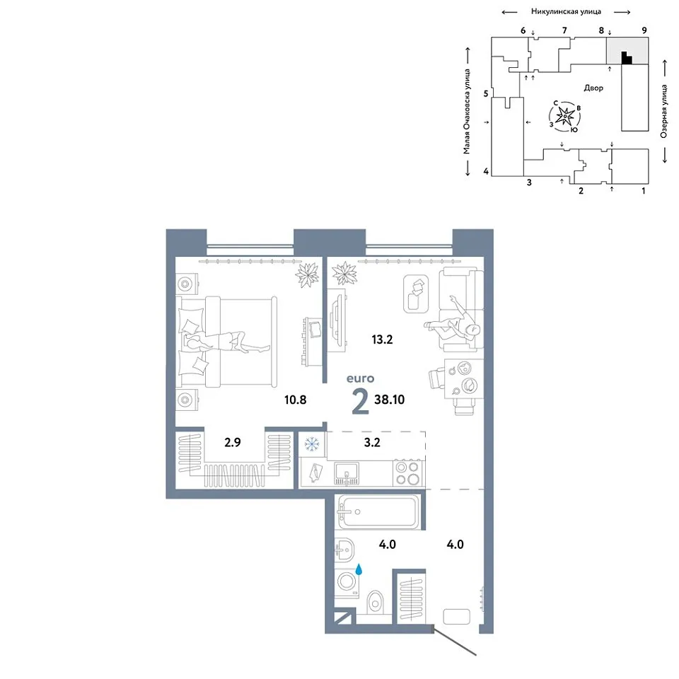 Количество комнат: 2, 38.1 кв.м.