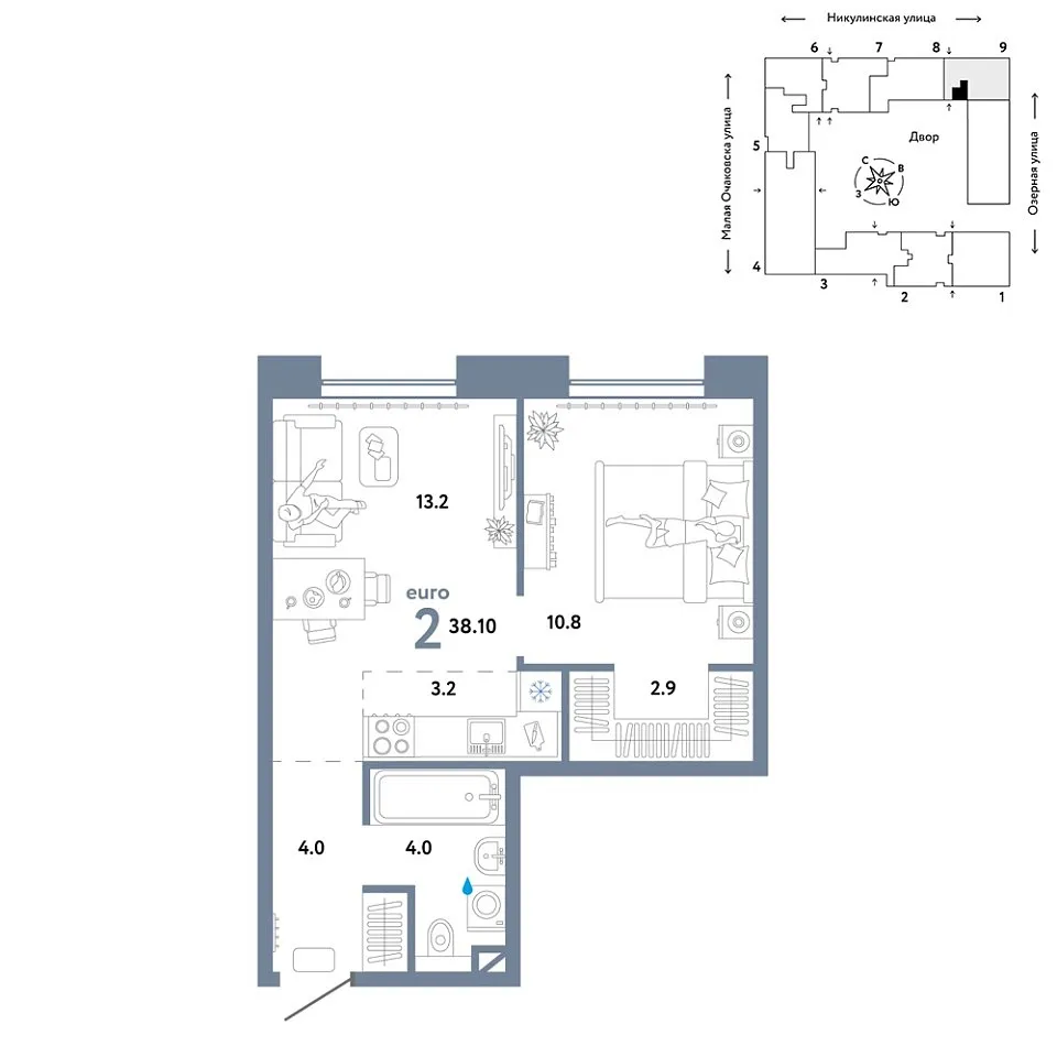 Купить новую двухкомнатную квартиру 38.1 м² на 7/30 этаже в ЖК «Страна.Озёрная», г. Тюмень за 32386666 ₽ | Агентство недвижимости «Вплюсе.Топ» — Недвижимость России