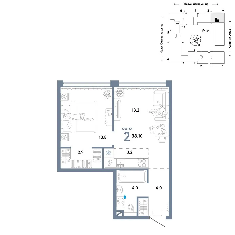 Купить новую двухкомнатную квартиру 38.1 м² на 8/30 этаже в ЖК «Страна.Озёрная», г. Тюмень за 32386666 ₽ | Агентство недвижимости «Вплюсе.Топ» — Недвижимость России
