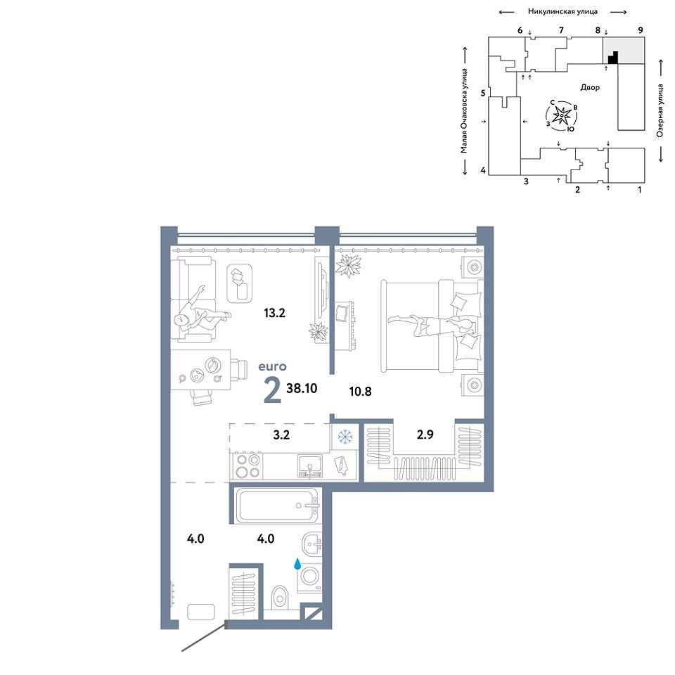 Купить новую двухкомнатную квартиру 38.1 м² на 8/30 этаже в ЖК «Страна.Озёрная», г. Тюмень за 36253333 ₽ | Агентство недвижимости «Вплюсе.Топ» — Недвижимость России