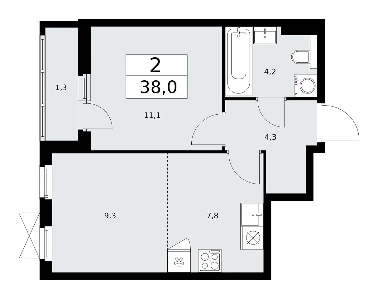 Площадь (общ/жил/кух), м2: 37.3/—/11.1