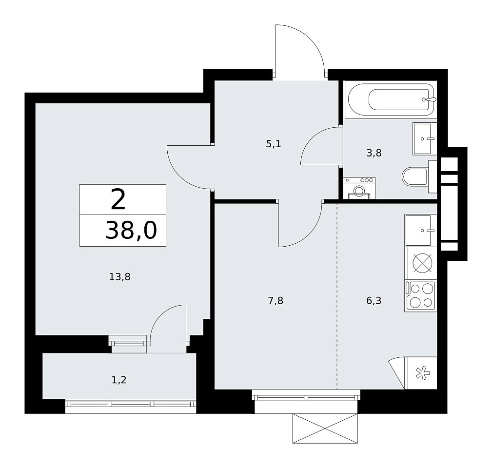 Площадь (общ/жил/кух), м2: 39.2/—/8.9