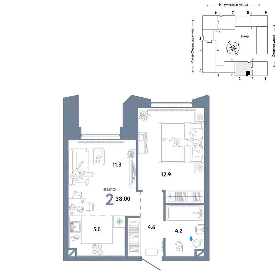 Купить новую двухкомнатную квартиру 38 м² на 16/30 этаже в ЖК «Страна.Озёрная», г. Тюмень за 24653333 ₽ | Агентство недвижимости «Вплюсе.Топ» — Недвижимость России