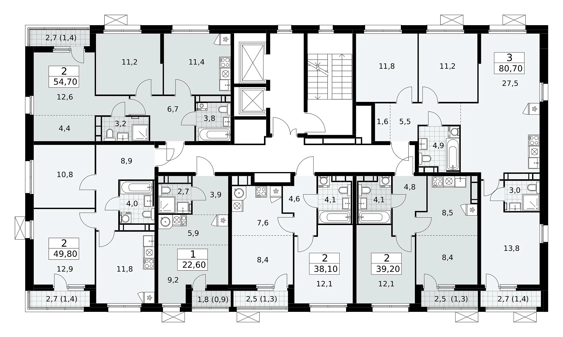 Площадь (общ/жил/кух), м2: 54.4/—/11.1