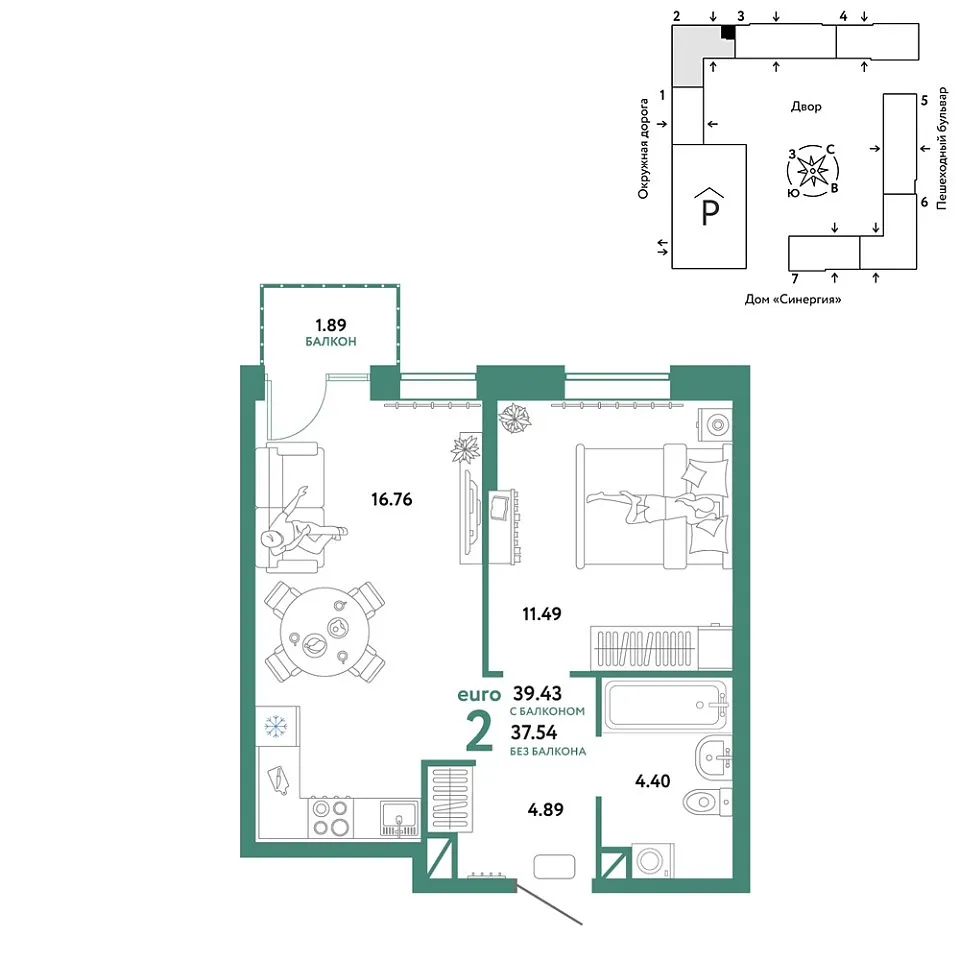 Купить новую двухкомнатную квартиру 39.43 м² на 4/16 этаже в ЖК «Юнион», г. Тюмень за 6633333 ₽ | Агентство недвижимости «Вплюсе.Топ» — Недвижимость России