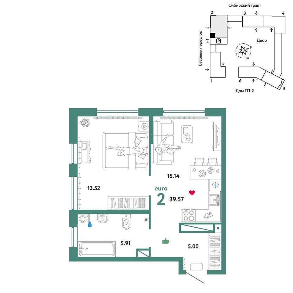 Купить новую двухкомнатную квартиру 39.57 м² на 13/32 этаже в ЖК «Сибирский сад», г. Тюмень за 10674699 ₽ | Агентство недвижимости «Вплюсе.Топ» — Недвижимость России