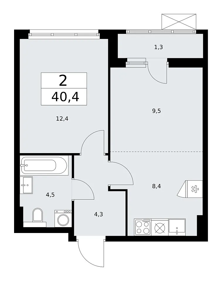 Площадь (общ/жил/кух), м2: 33.7/—/9.6