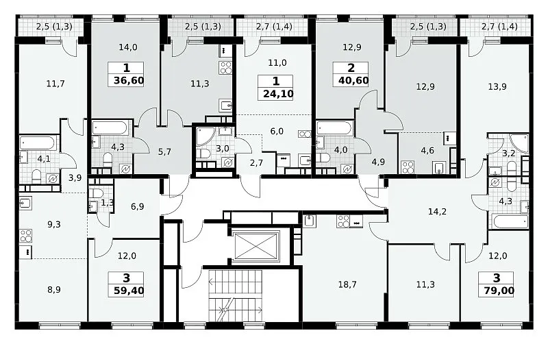 Общая площадь 40.6 м2