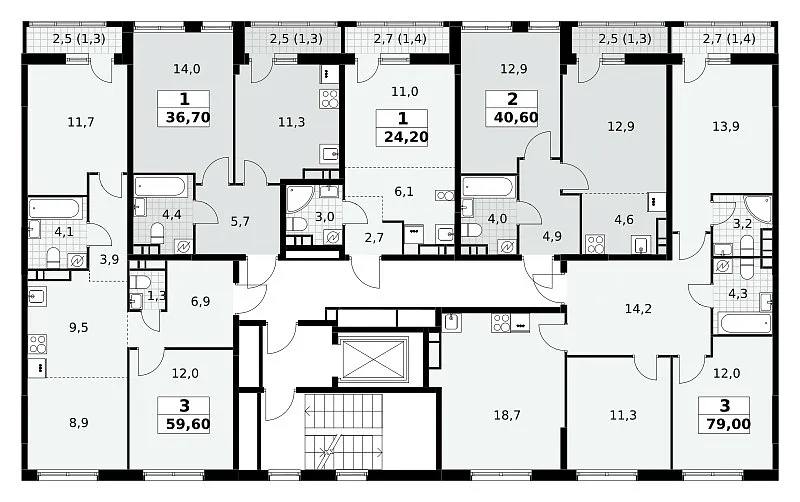 Общая площадь 40.6 м2