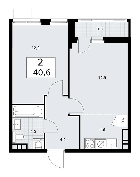 Количество комнат: 2, 40.6 кв.м.