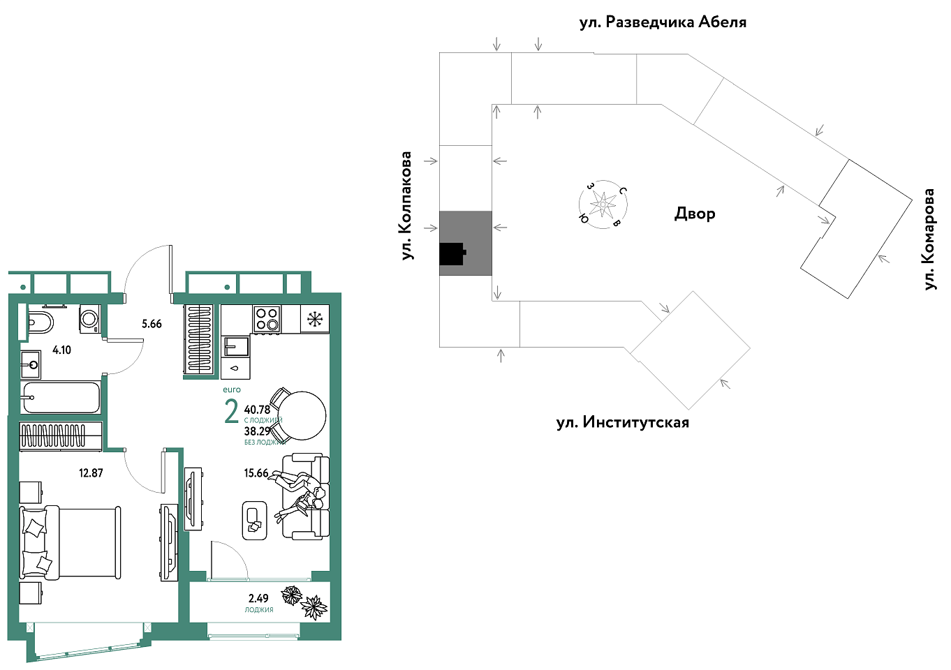 Общая площадь 40.78 м2
