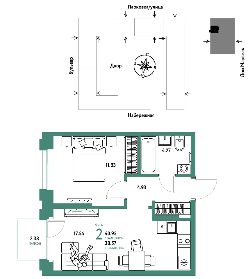 Купить новую двухкомнатную квартиру 40.95 м² на 9/24 этаже в ЖК «Европейский берег 2.0», г. Тюмень за 9244444 ₽ | Агентство недвижимости «Вплюсе.Топ» — Недвижимость России
