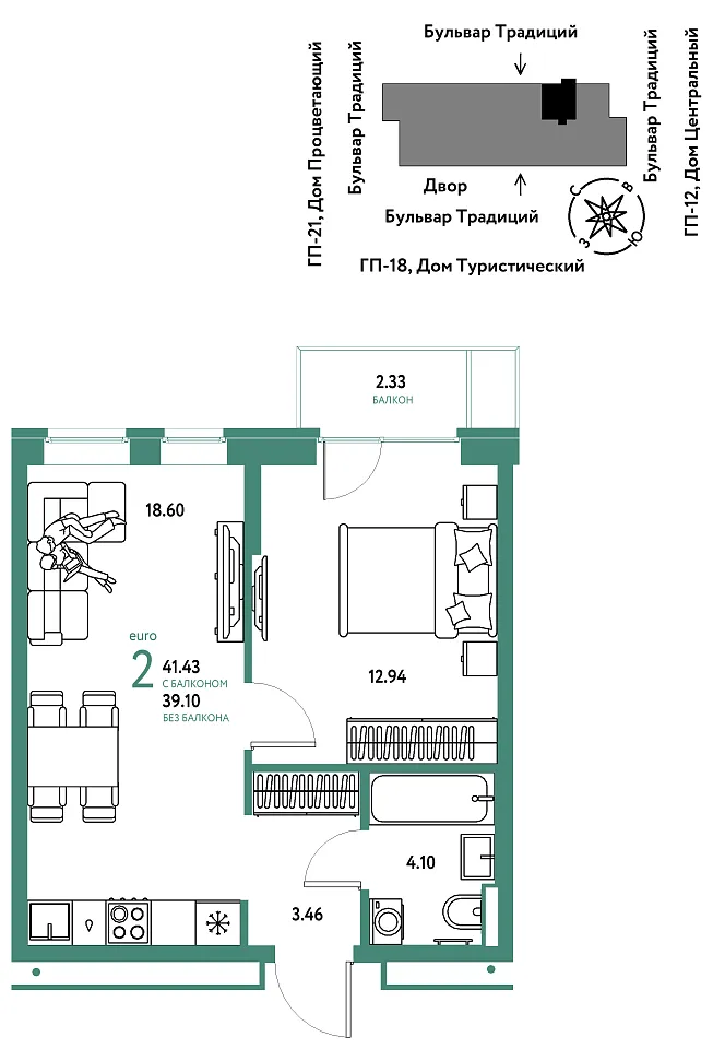 Купить новую двухкомнатную квартиру 41.43 м² на 7/11 этаже в ЖК «Домашний», г. Тюмень за 6633333 ₽ | Агентство недвижимости «Вплюсе.Топ» — Недвижимость России