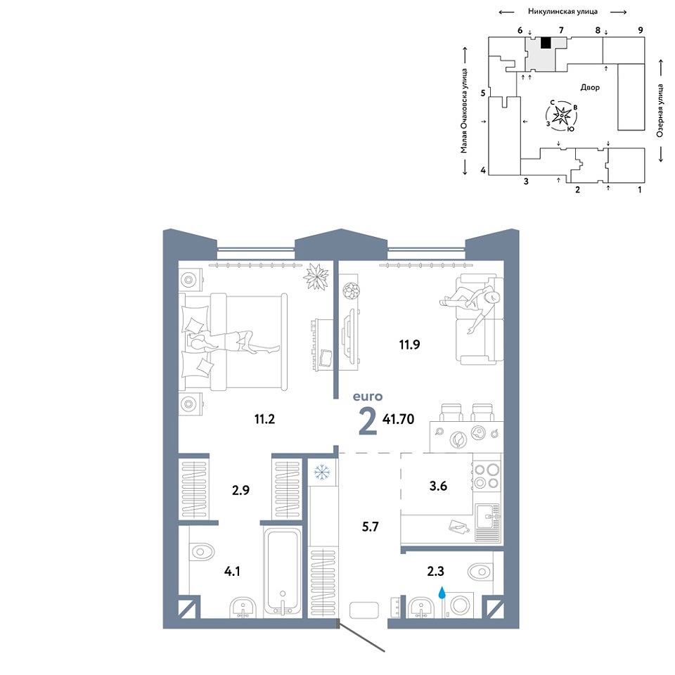 Купить новую двухкомнатную квартиру 41.7 м² на 7/30 этаже в ЖК «Страна.Озёрная», г. Тюмень за 32386667 ₽ | Агентство недвижимости «Вплюсе.Топ» — Недвижимость России