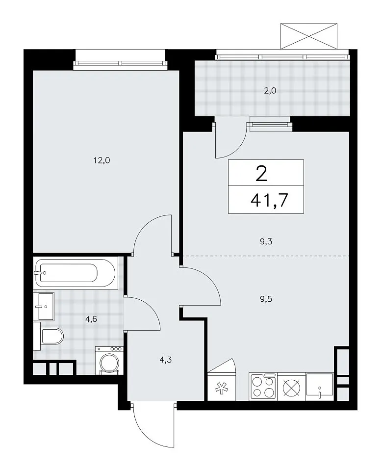 Количество комнат: 2, 41.7 кв.м.