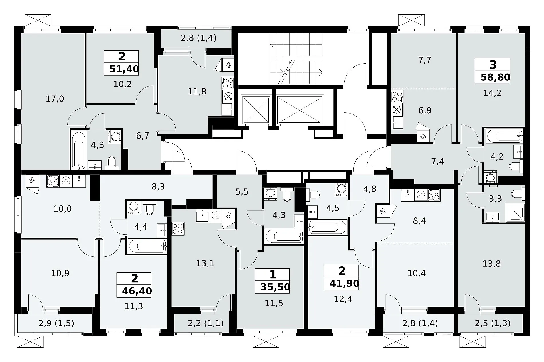 Площадь (общ/жил/кух), м2: 54.4/—/11.1