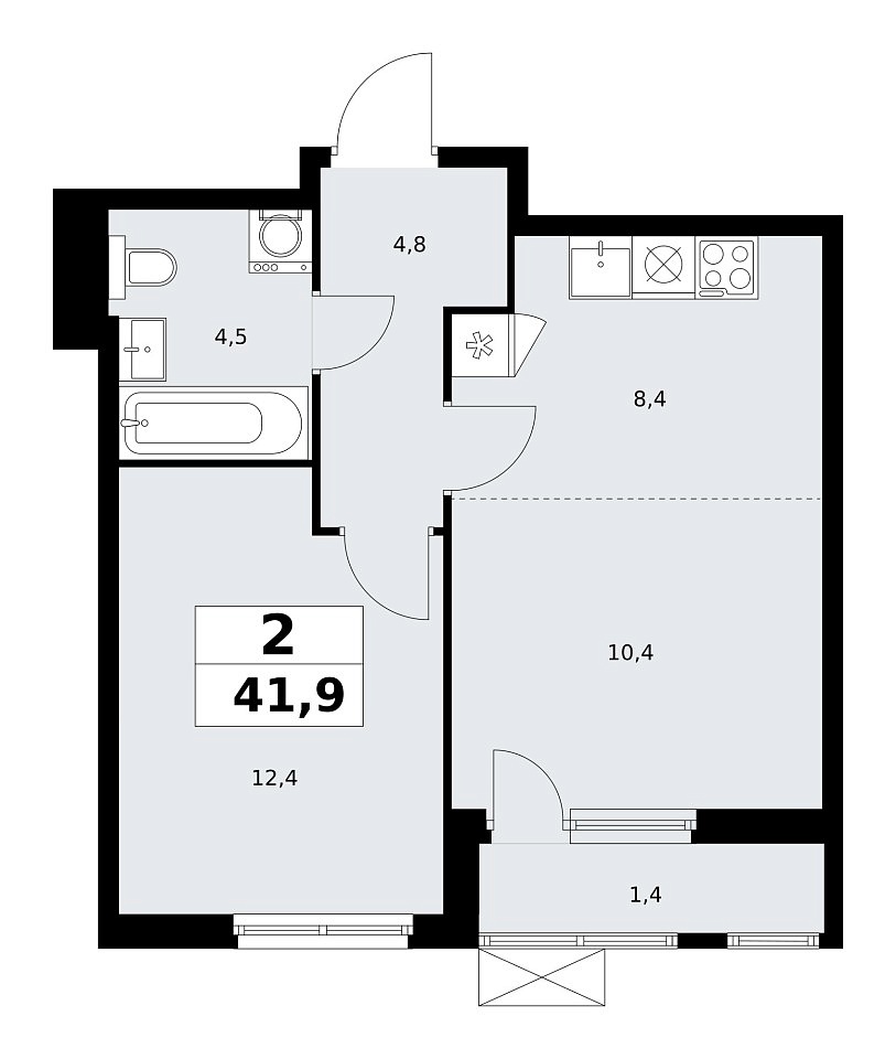 Количество комнат: 2, 41.9 кв.м.