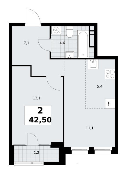 Площадь (общ/жил/кух), м2: 42.5/—/5.4