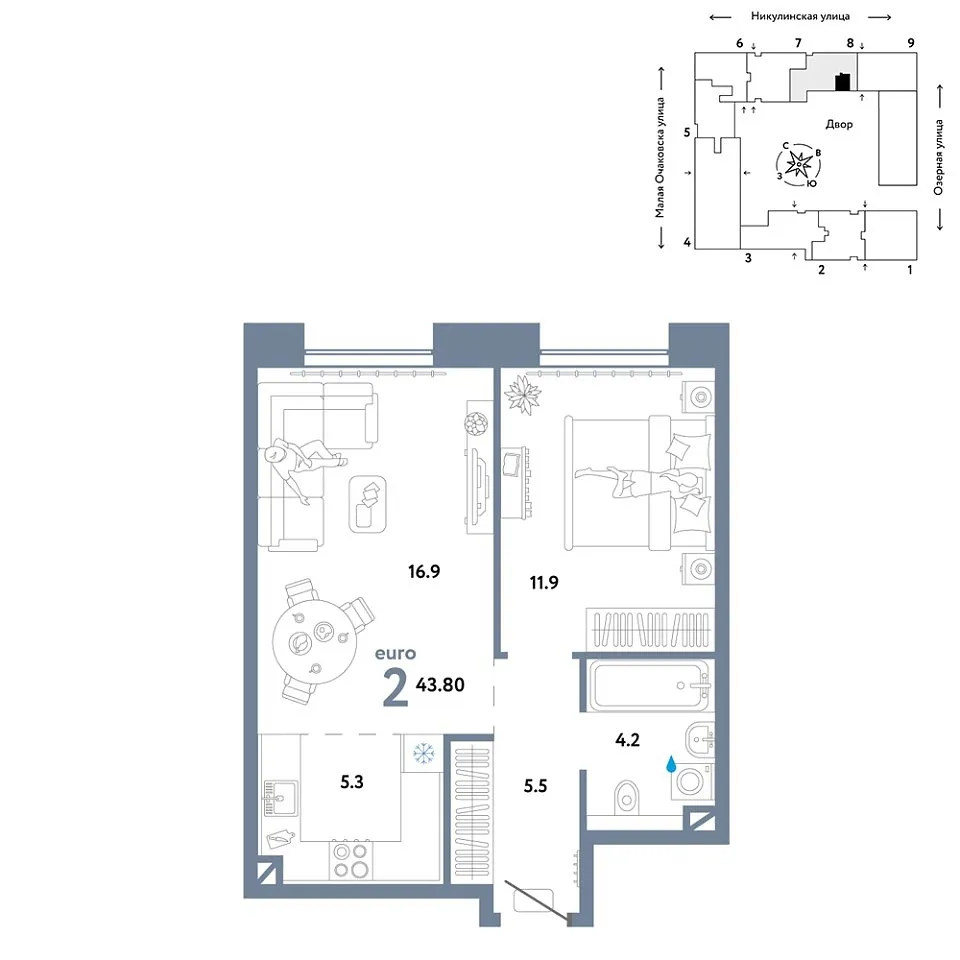 Купить новую двухкомнатную квартиру 43.8 м² на 3/30 этаже в ЖК «Страна.Озёрная», г. Тюмень за 37986667 ₽ | Агентство недвижимости «Вплюсе.Топ» — Недвижимость России