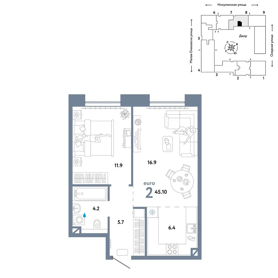 Купить новую двухкомнатную квартиру 45.1 м² на 7/30 этаже в ЖК «Страна.Озёрная», г. Тюмень за 27282353 ₽ | Агентство недвижимости «Вплюсе.Топ» — Недвижимость России