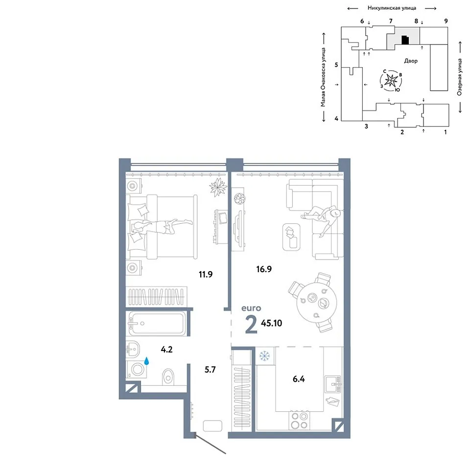 Купить новую двухкомнатную квартиру 45.1 м² на 9/30 этаже в ЖК «Страна.Озёрная», г. Тюмень за 43720000 ₽ | Агентство недвижимости «Вплюсе.Топ» — Недвижимость России