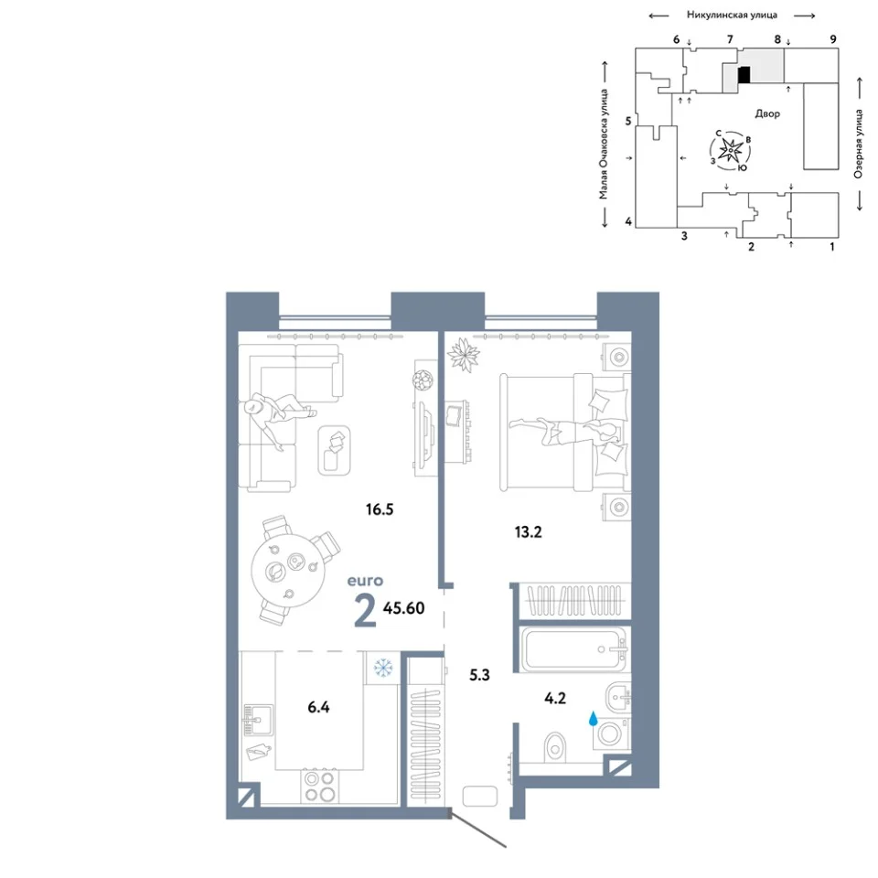 Купить новую двухкомнатную квартиру 45.6 м² на 5/30 этаже в ЖК «Страна.Озёрная», г. Тюмень за 24341180 ₽ | Агентство недвижимости «Вплюсе.Топ» — Недвижимость России