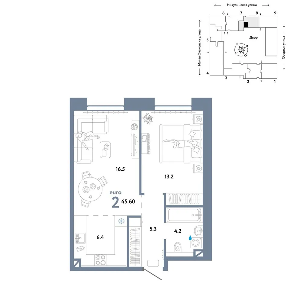 Купить новую двухкомнатную квартиру 45.6 м² на 7/30 этаже в ЖК «Страна.Озёрная», г. Тюмень за 28811765 ₽ | Агентство недвижимости «Вплюсе.Топ» — Недвижимость России