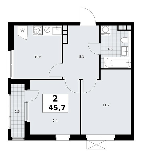 Площадь (общ/жил/кух), м2: 44.6/—/10.3
