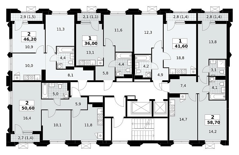Общая площадь 46.2 м2