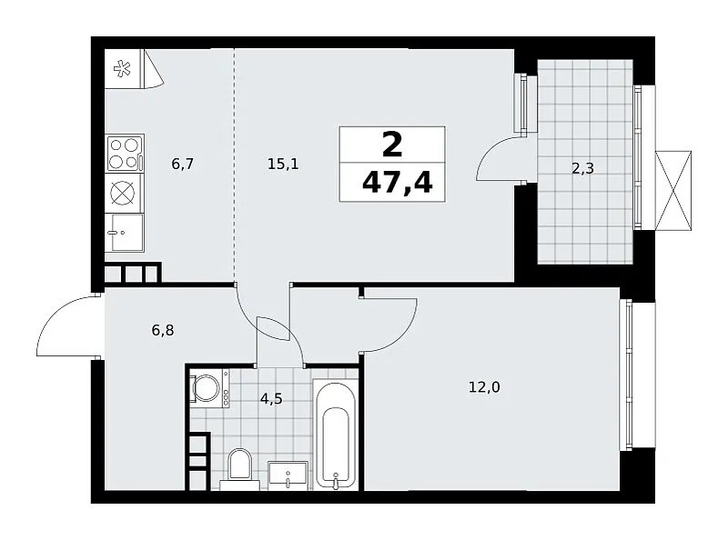Количество комнат: 2, 47.4 кв.м.