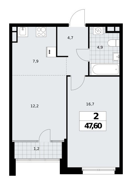 Площадь (общ/жил/кух), м2: 47.6/—/7.9