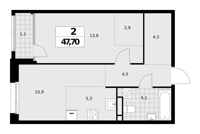 Количество комнат: 2, 47.7 кв.м.