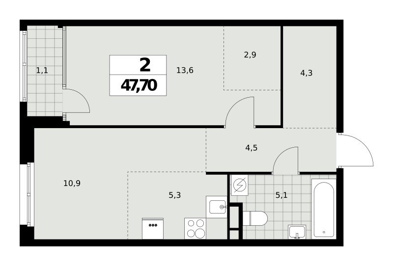 Площадь (общ/жил/кух), м2: 47.9/—/5.3