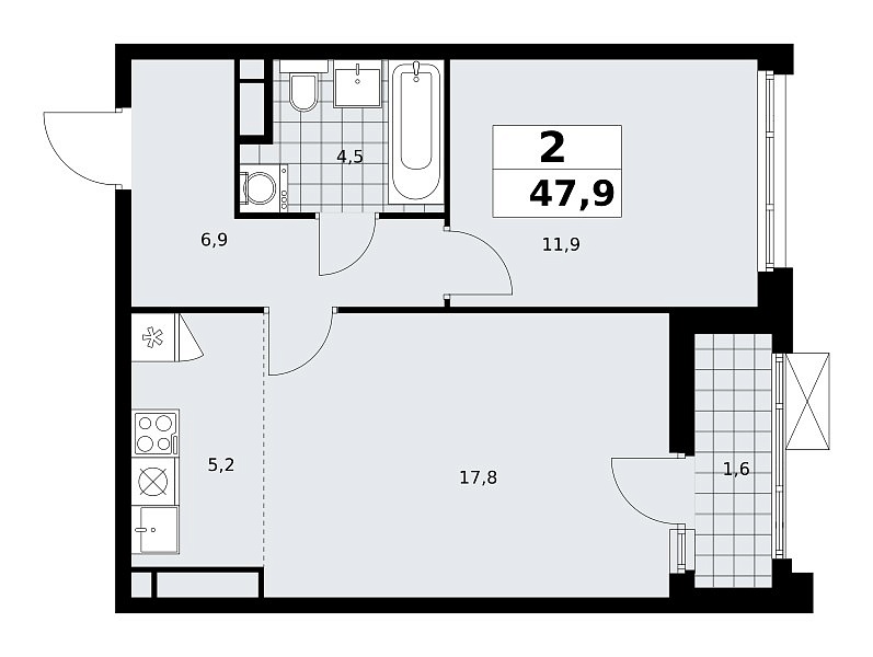 Количество комнат: 2, 47.9 кв.м.