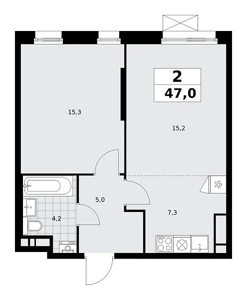 Количество комнат: 2, 47 кв.м.