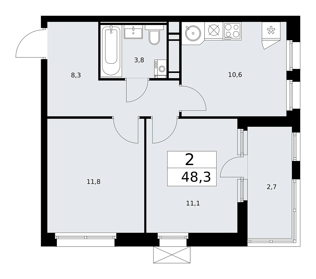 Количество комнат: 2, 48.3 кв.м.