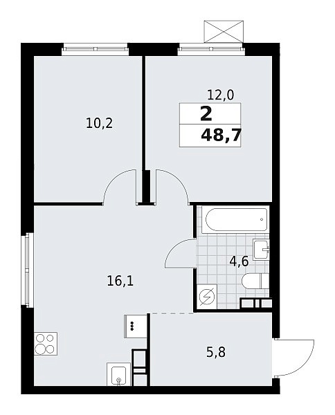 Площадь (общ/жил/кух), м2: 48.7/—/16.1